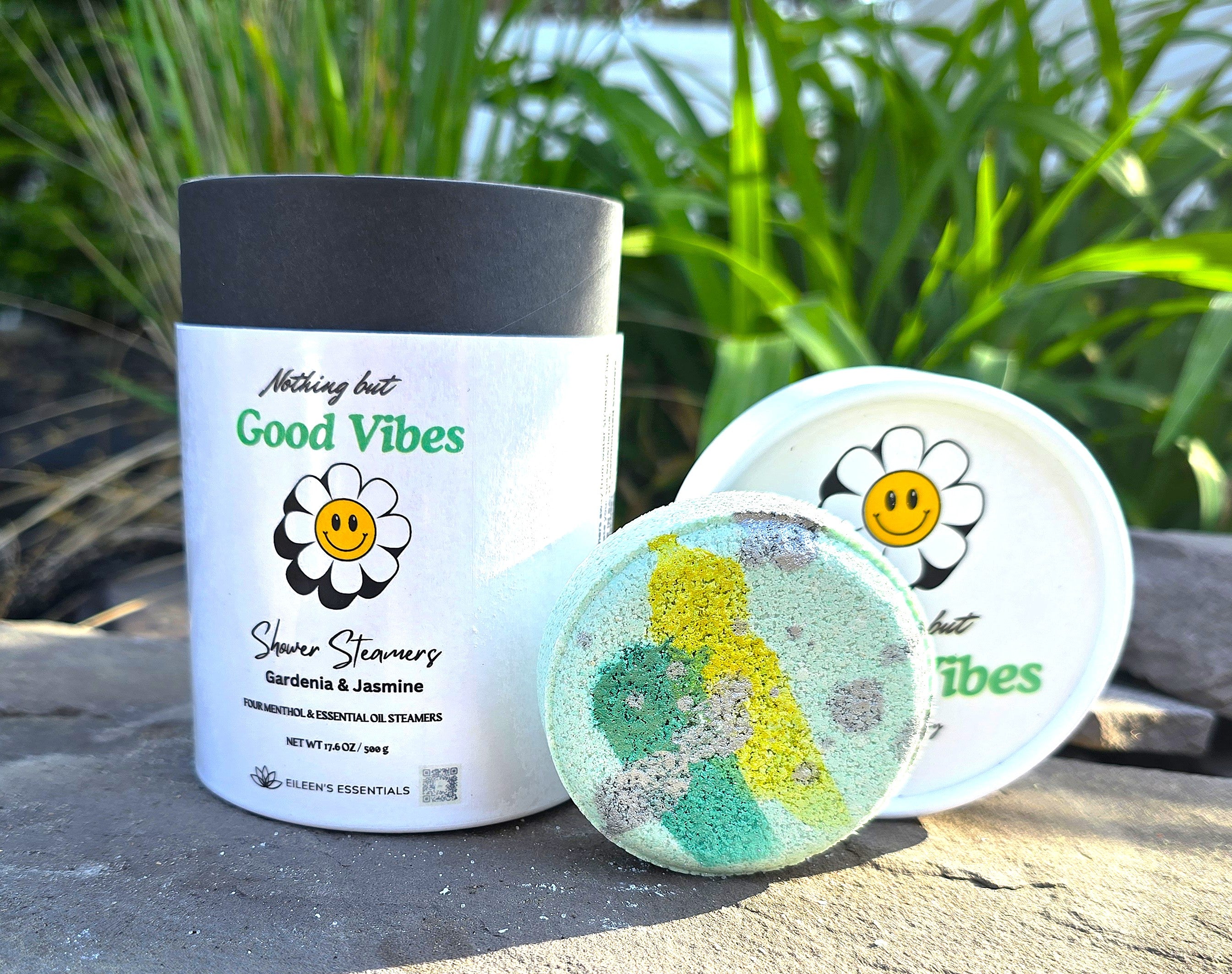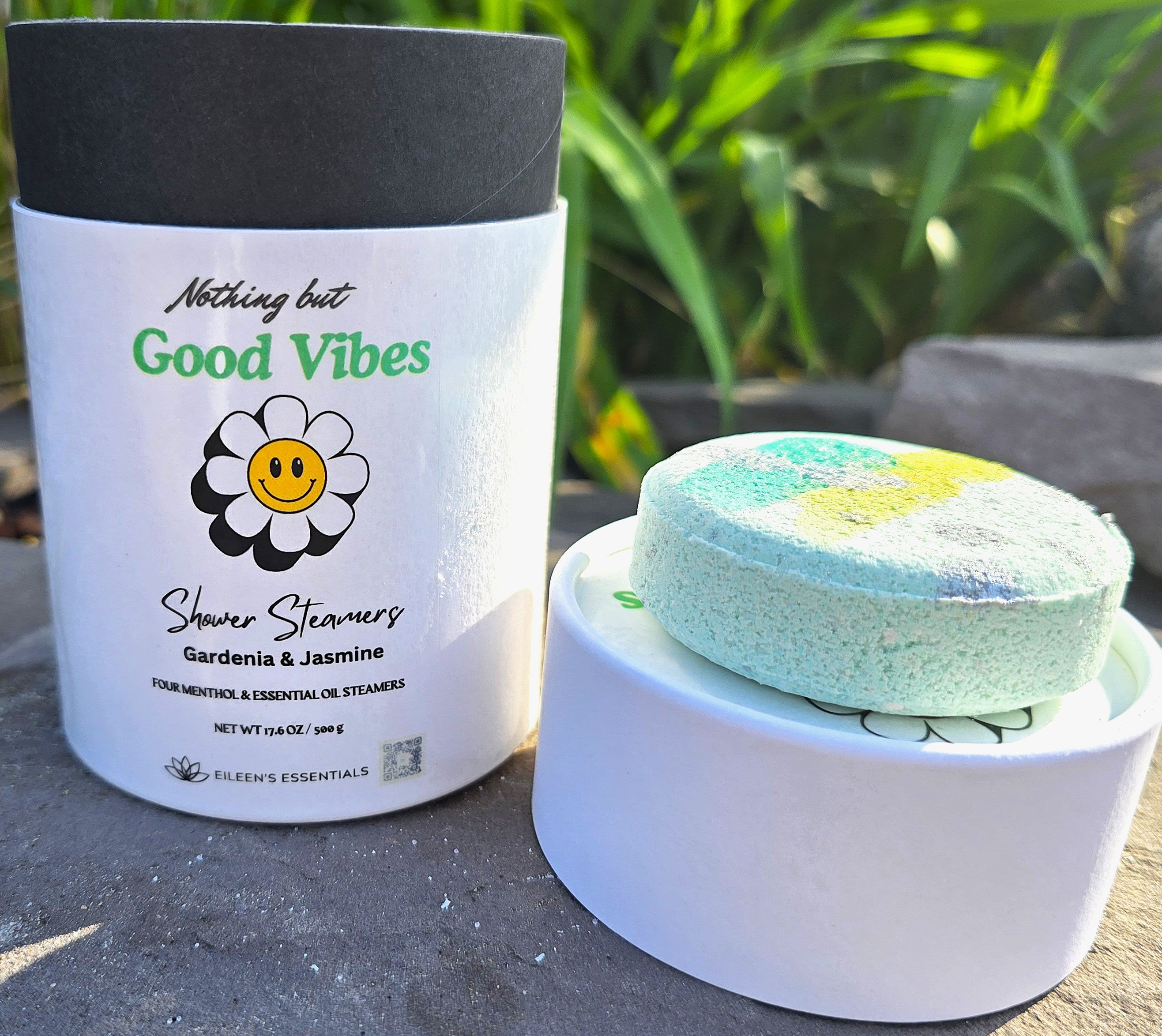 • Gardenia & Jasmine Shower Steamers with Mentholated Crystals (Four Pack, 4 oz each)