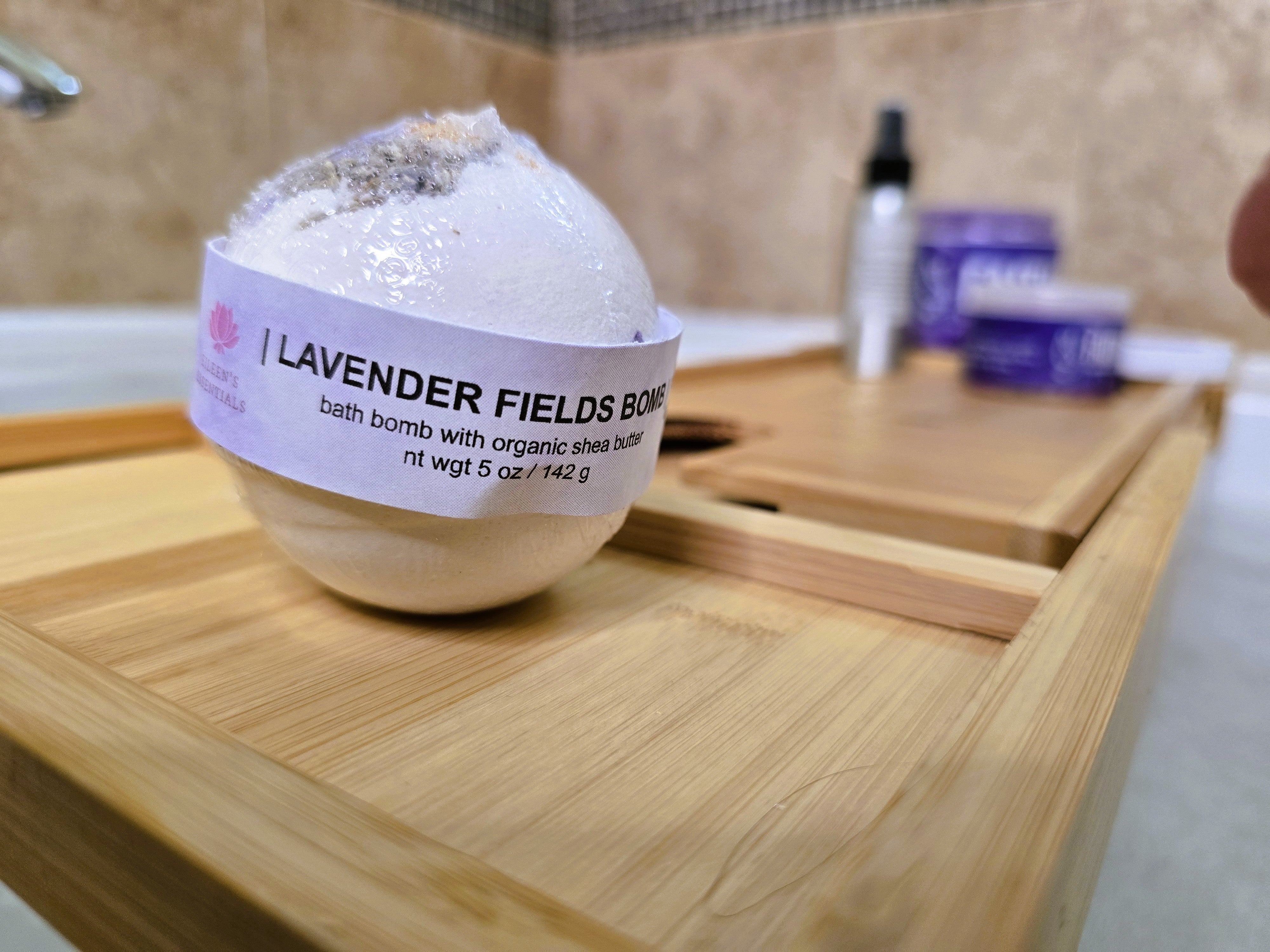 • Lavender Fields Bath Bomb (5 oz): Effervescent, moisturizing, and perfect for unwinding.