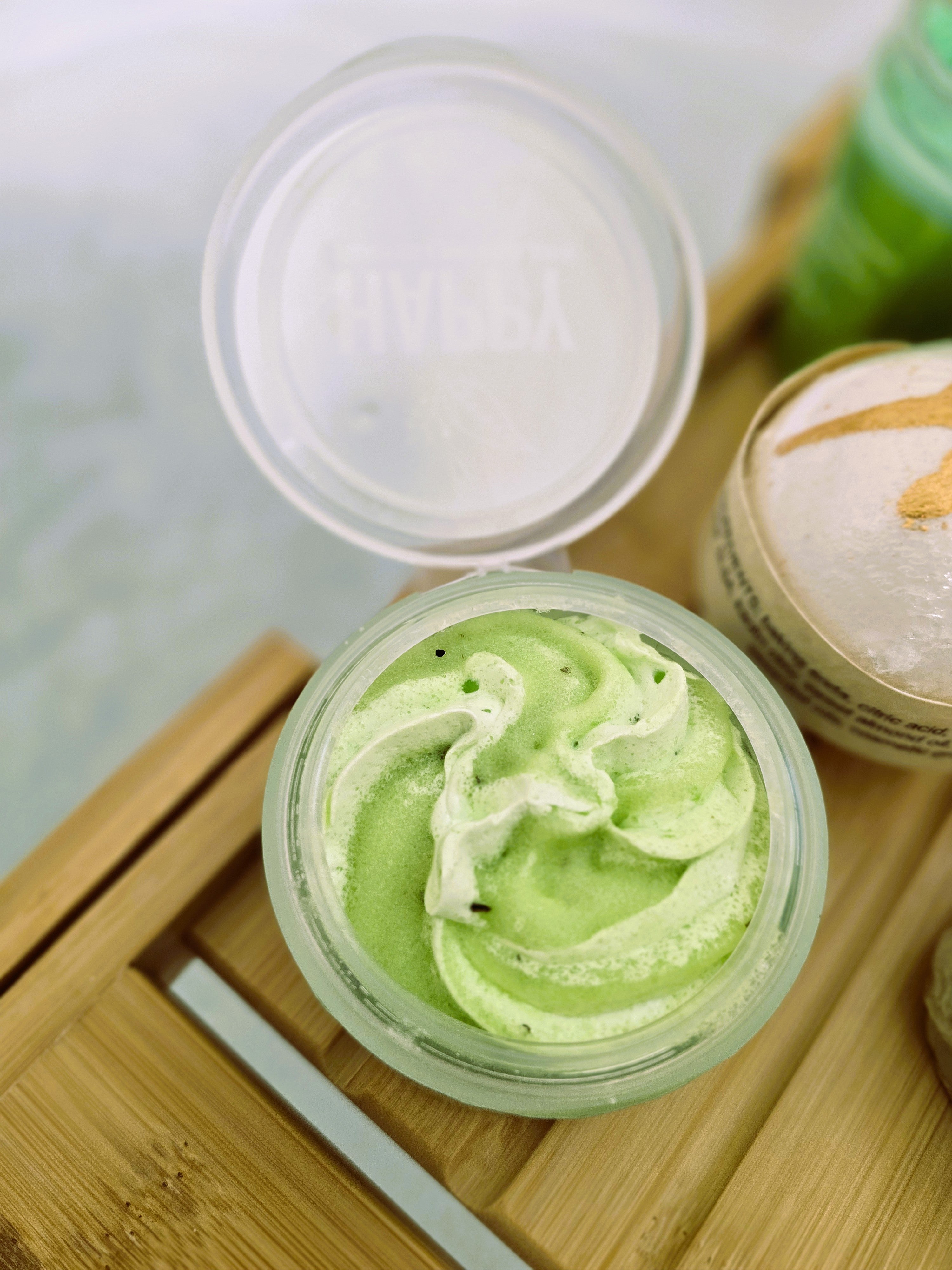 This luxuriously whipped body butter is crafted with a decadent blend of organic Shea, Mango, Cocoa, Monoi, and Kokum butters. Nourishing oils—Jojoba, Coconut, Grape Seed, and Vitamin E—lock in moisture while eucalyptus and mint essential oils deliver a refreshing aromatherapy experience.