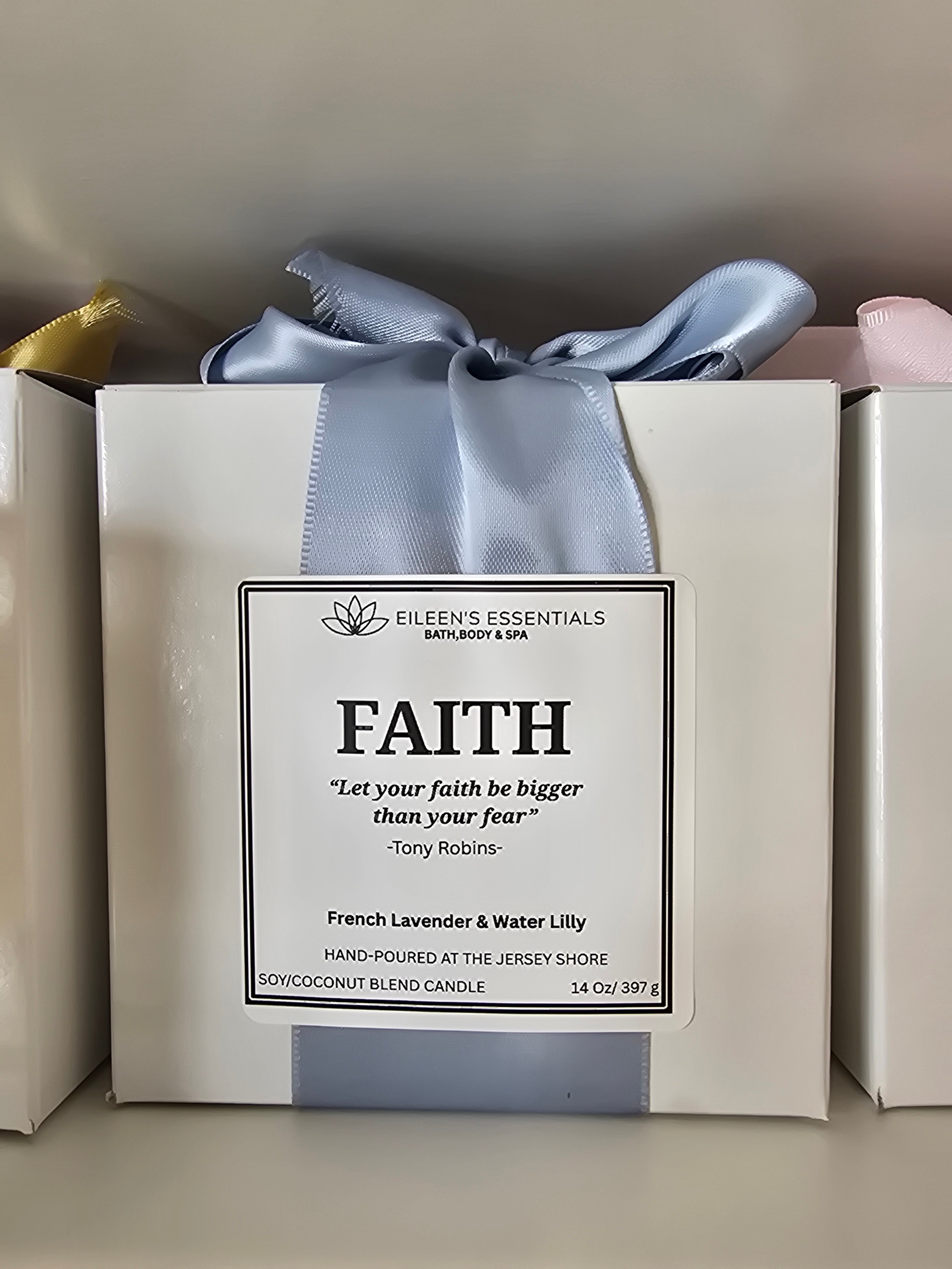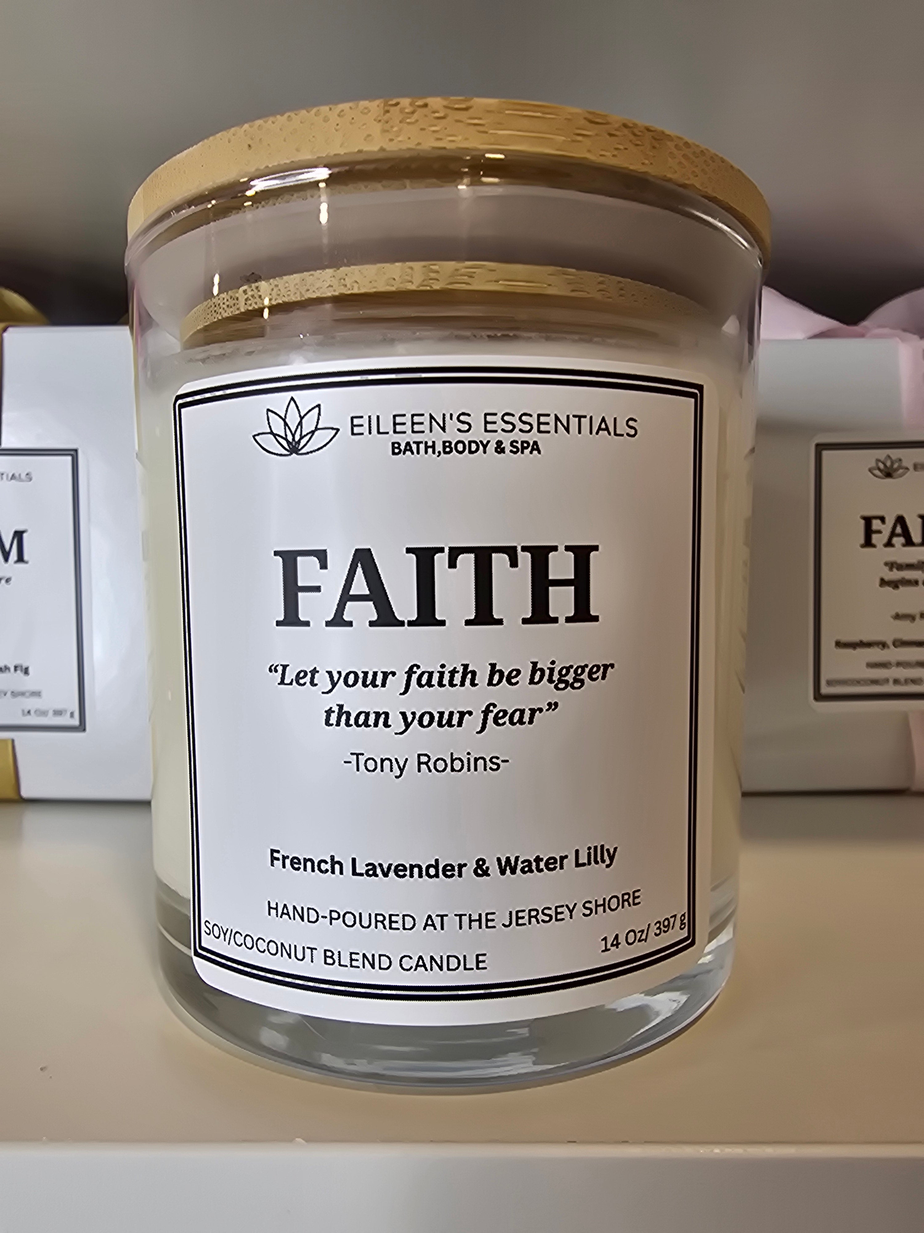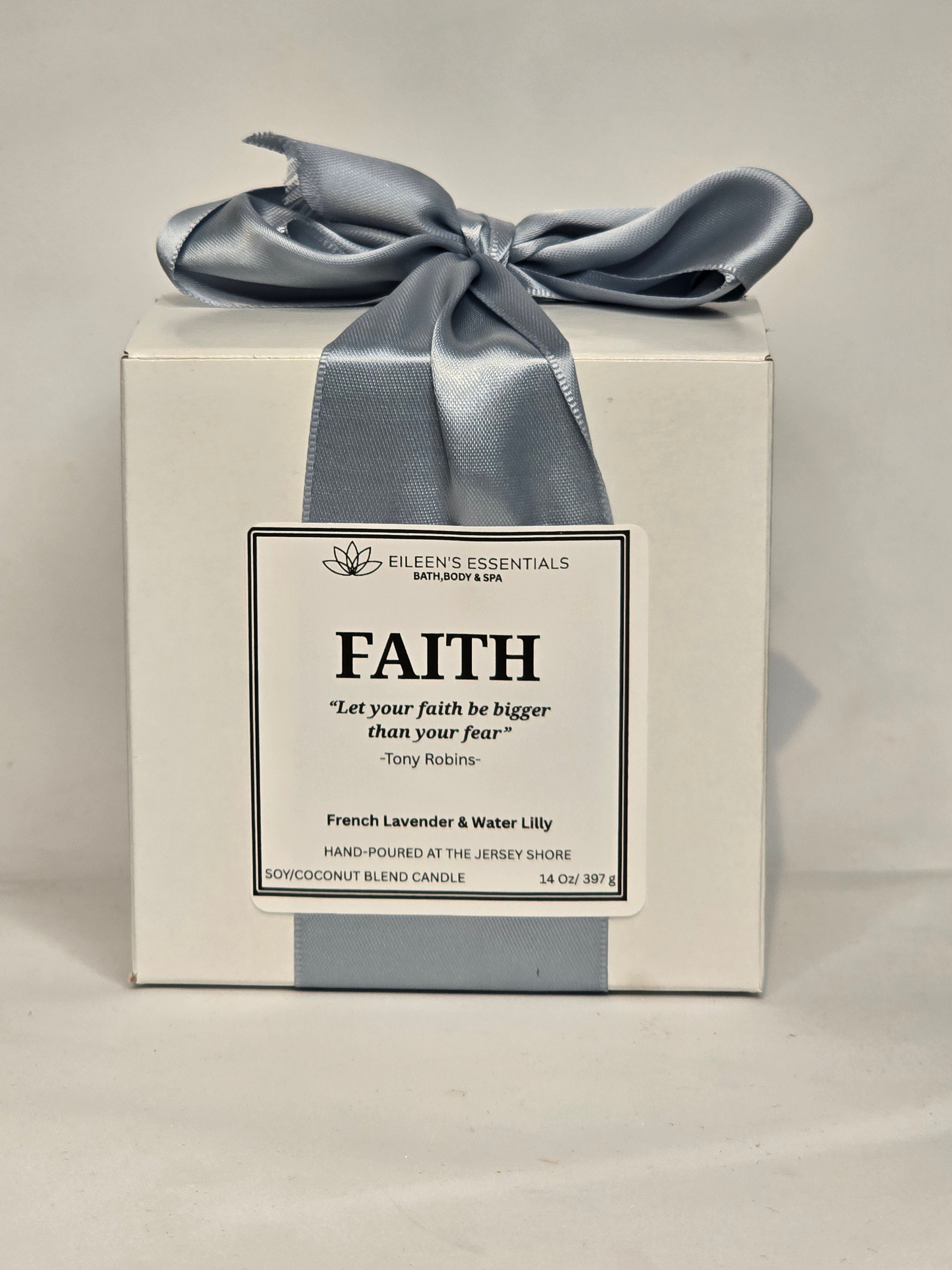 FAITH invites you to unwind, meditate, or simply relax as the gentle glow dances in the soft candlelight.