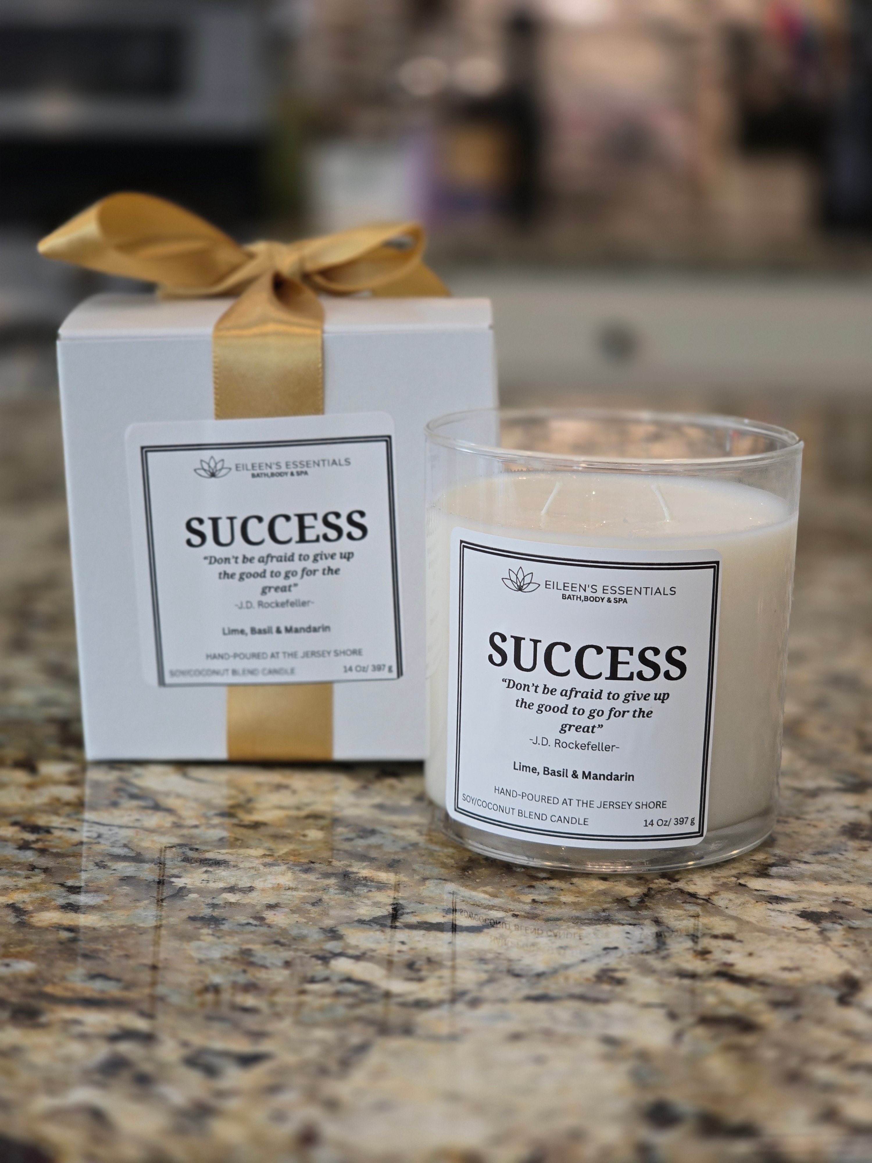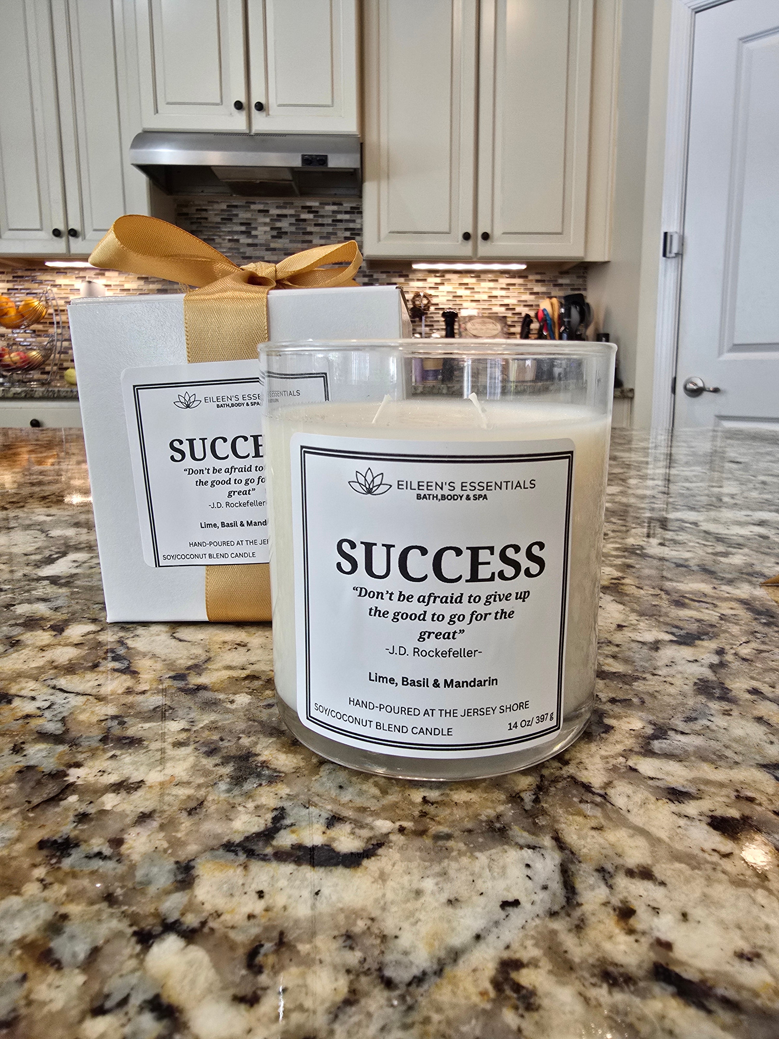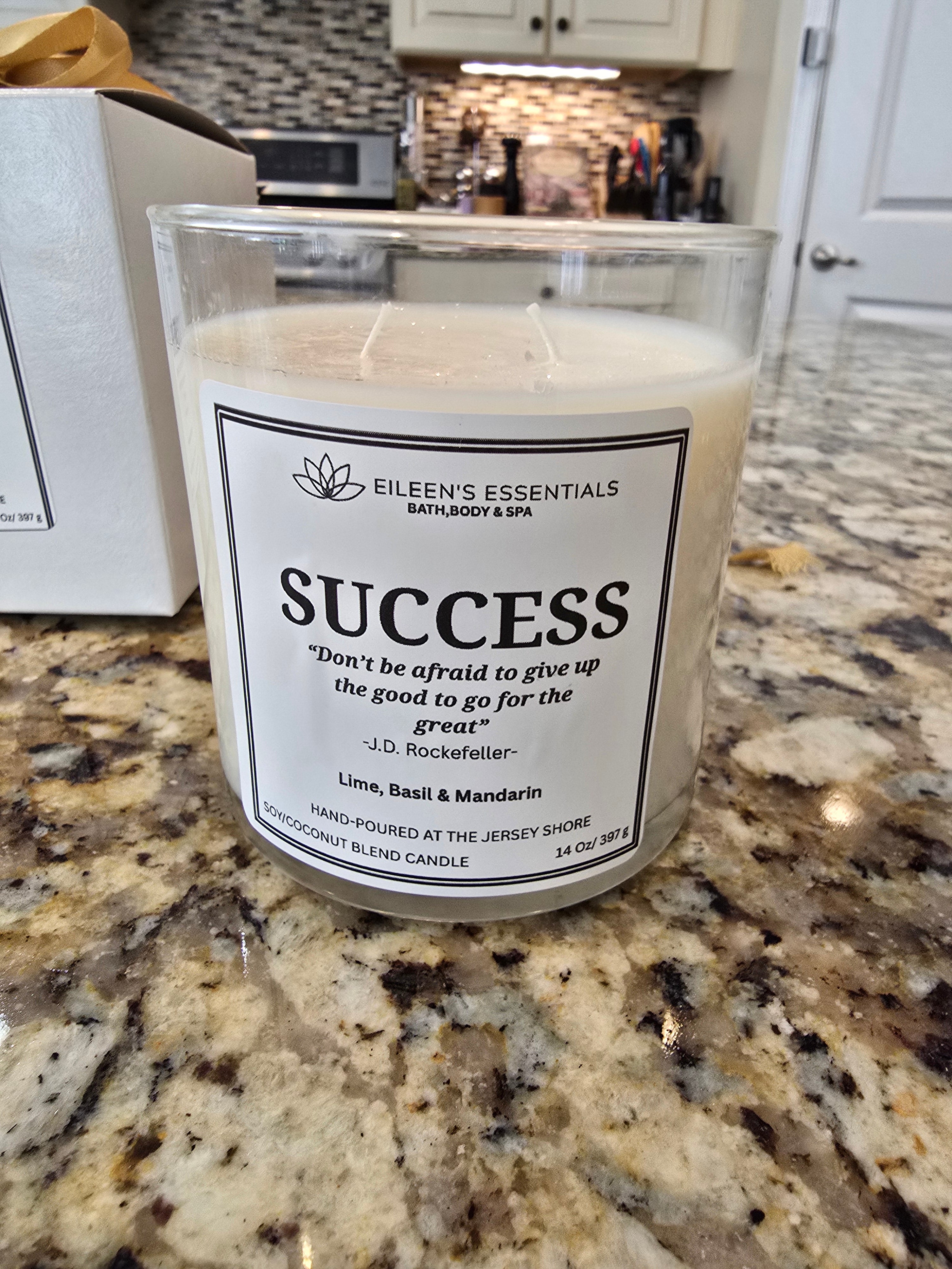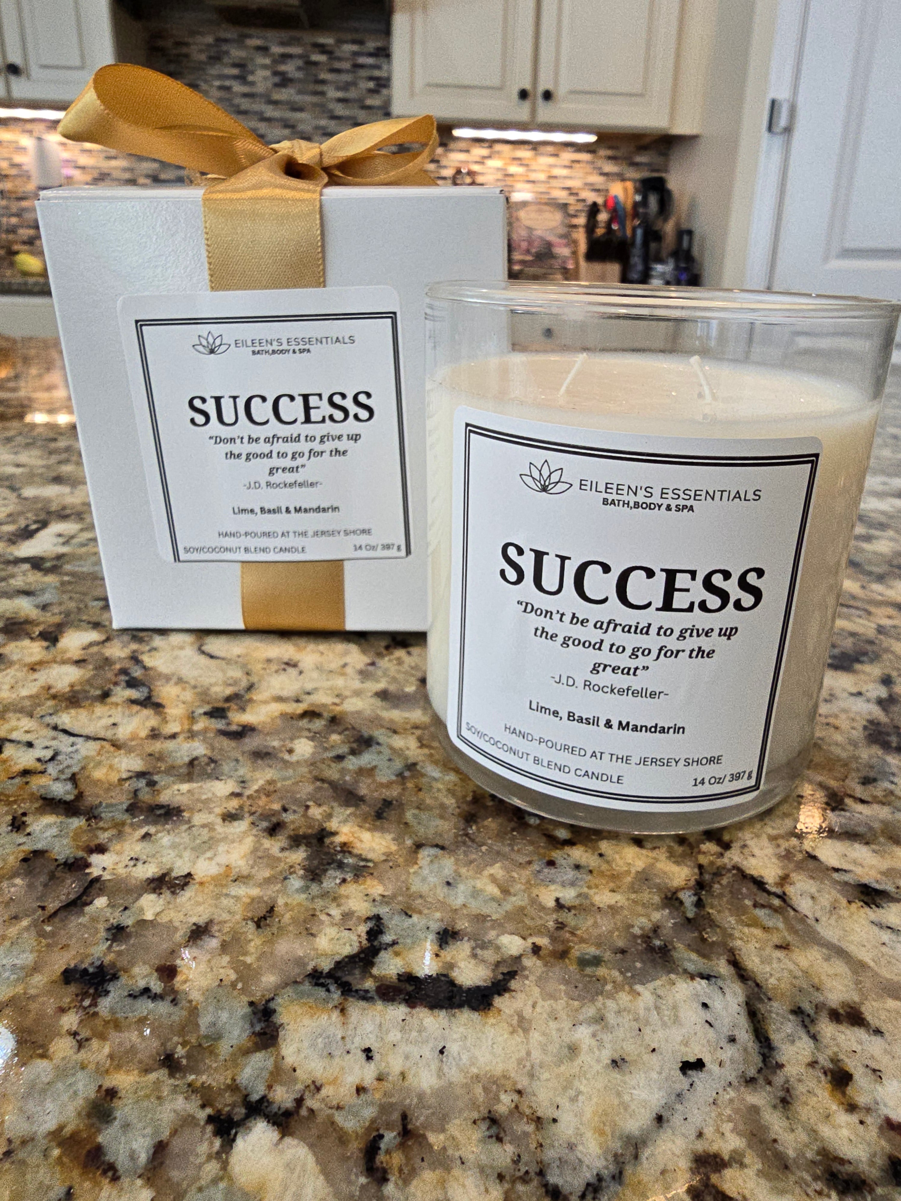 Inspirational Glass Candle; SUCCESS