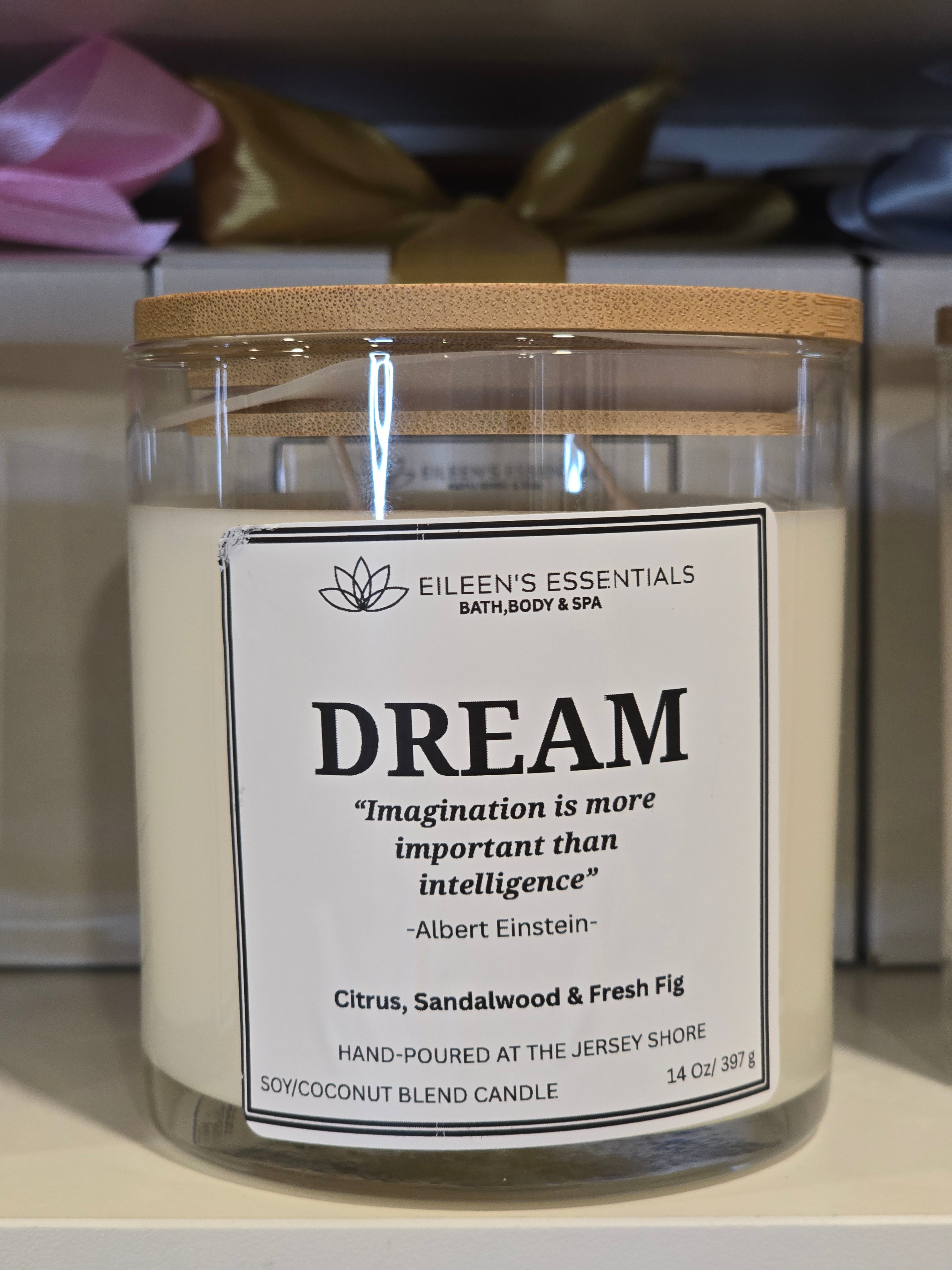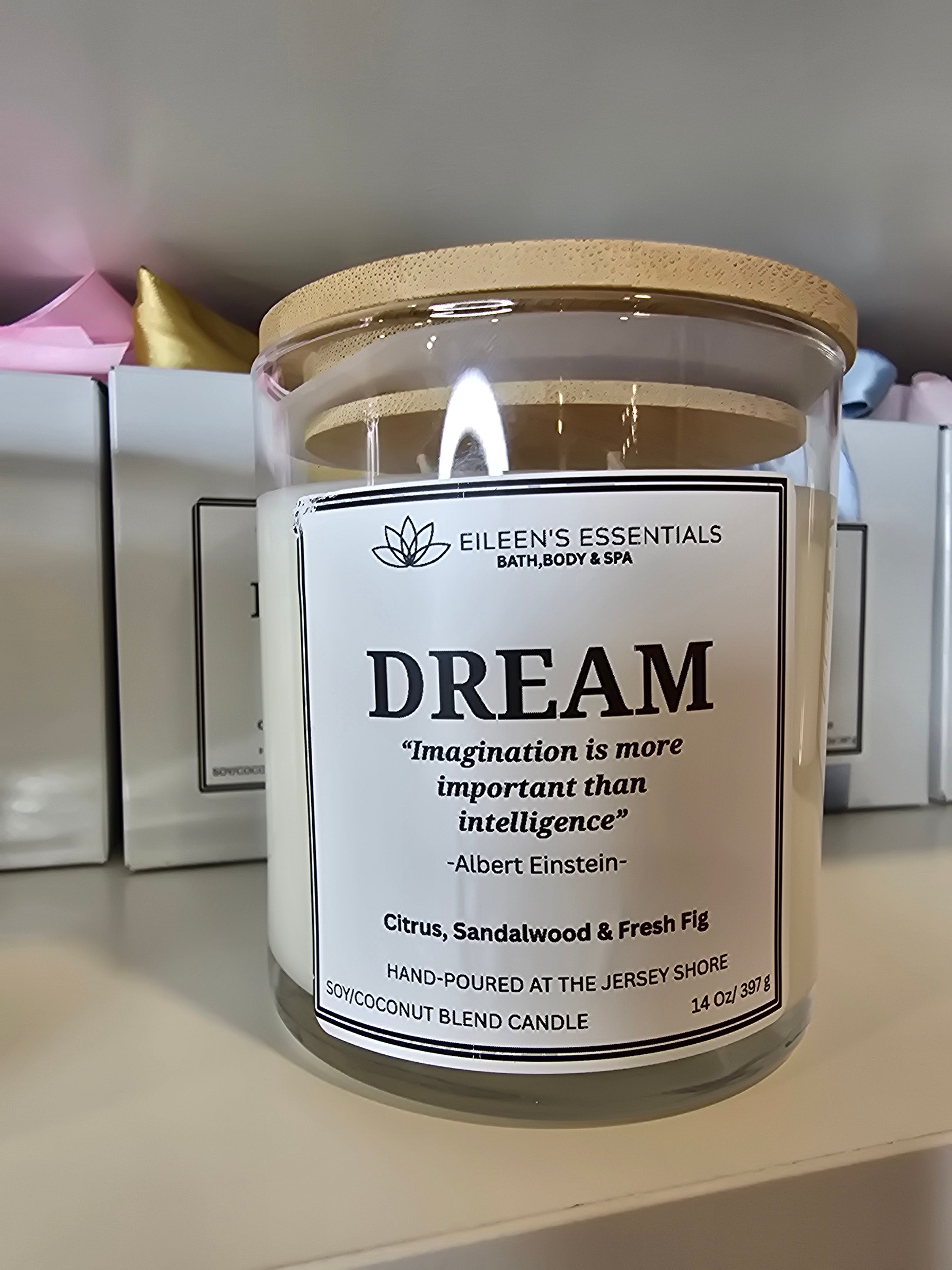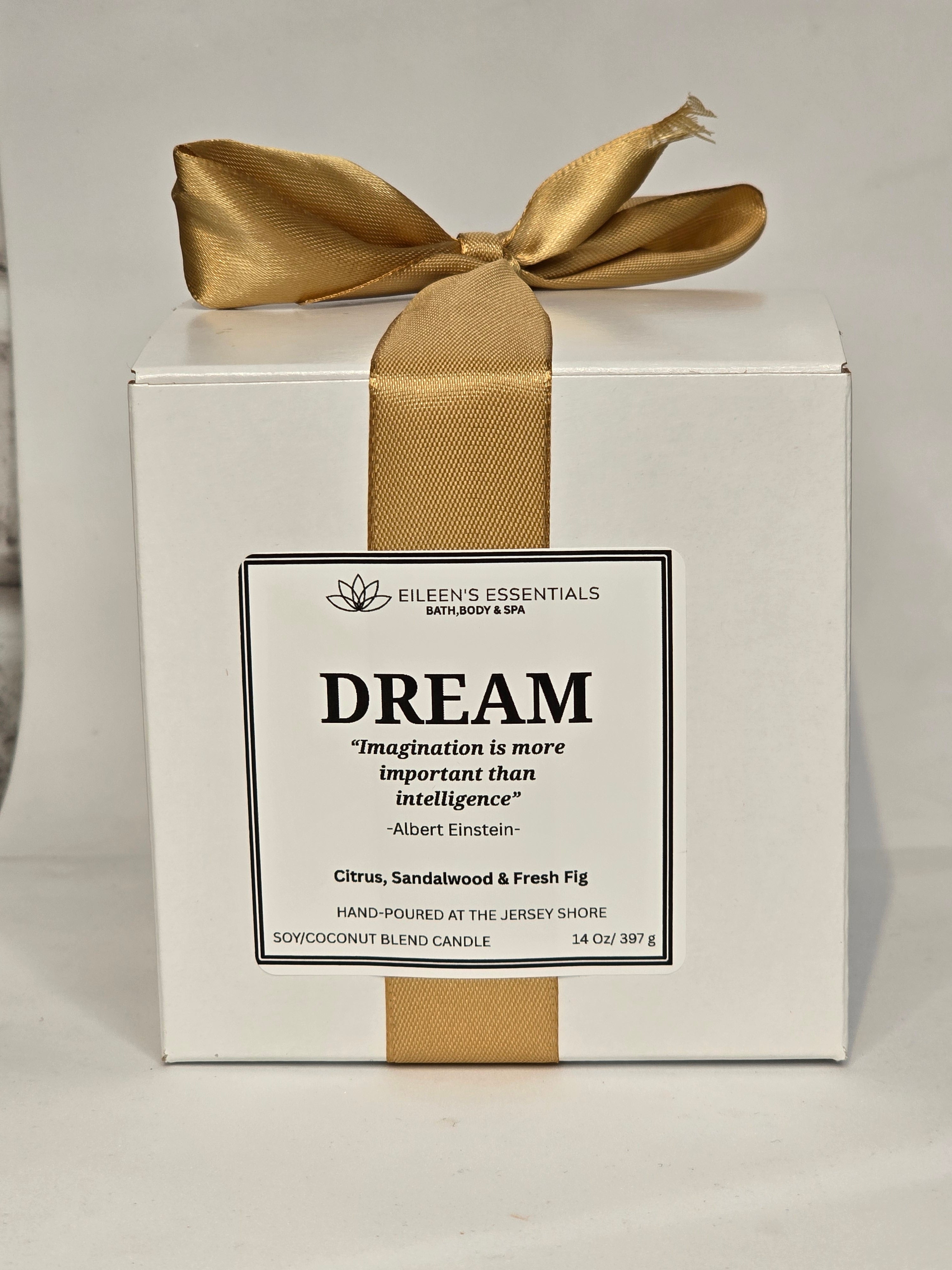 Awaken your senses with the serene embrace of DREAM—a sophisticated harmony of citrus lemon, fresh fig, and ripe persimmon that gently unfolds into rich agarwood paired with a soft, powdery hint of tonka bean. This exquisite fragrance creates a tranquil escape, inviting you to drift into a restful, meditative state as the delicate candlelight flickers.